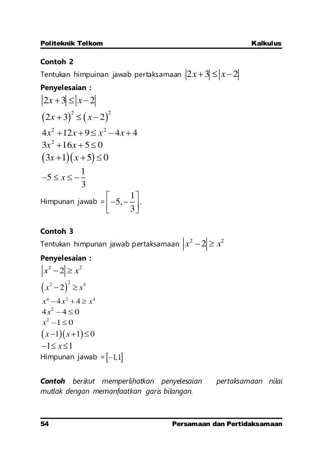 Persamaan nilai mutlak yaitu suatu nilai mutlak dari sebuah bilangan yang dapat didefinisikan sebagai jarak bilangan tersebut terhadap titik 0 pada garis bilangan tanpa memperhatikan arahnya. Adapun bentuk umum persamaan rasional adalah sebagai berikut: Soal cerita menghitung waktu dengan garis bilangan. Nilai mutlak dari suatu bilangan x dapat juga diartikan sebagai jarak bilangan tersebut terhadap titik 0 pada garis bilangan, dengan tidak memperhatikan arahnya. Menentukan kemiringan garis dari persamaan garis lurus.
