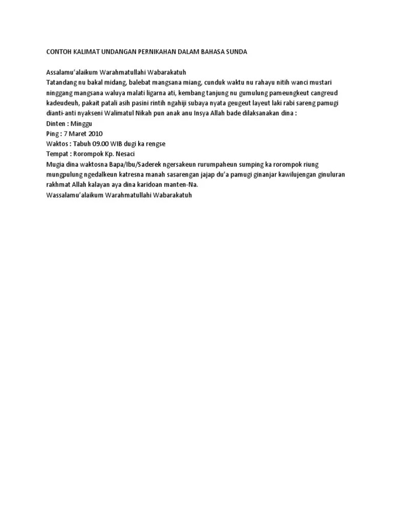Contoh Undangan Pernikahan Bahasa Sunda : Undangan Pernikahan Bahasa Sunda Doc / Kata kata undangan pernikahan bahasa sunda via wa untuk teman sodara.