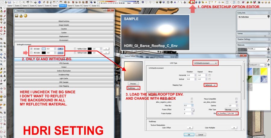 Cara Setting Hdri Vray Sketchup : Hdri Sky Lighting Tutorial Peter Guthrie : Menggunakan sun sky sebagai sumber cahaya.. Setting vray eksterior sketchup screenshot pada sebelumnya, sudah saya bagikan. Pada setting kali ini, saya menggunakan file hdri sebagai environment. Simple way to setting hdri in vray sketchup 2.0 · after you input hdri file in menu file, scrolling down until you find menu uvw type · change uvw type with . Sketchuptutorials #sketchup #vraynext #architecture #design #trending how to setup hdri background for your sketchup scene with vray . Menggunakan sun sky sebagai sumber cahaya.