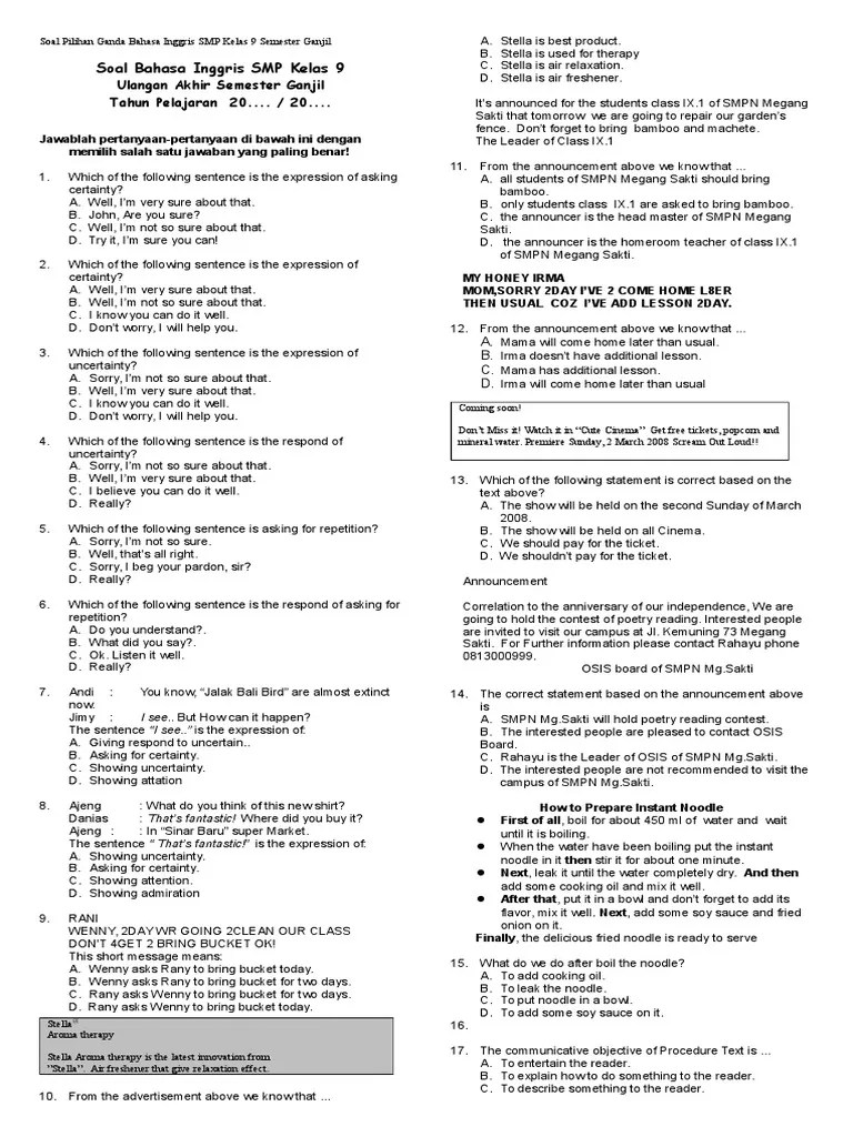 Kumpulan soal bahasa inggris smp kelas 9 .